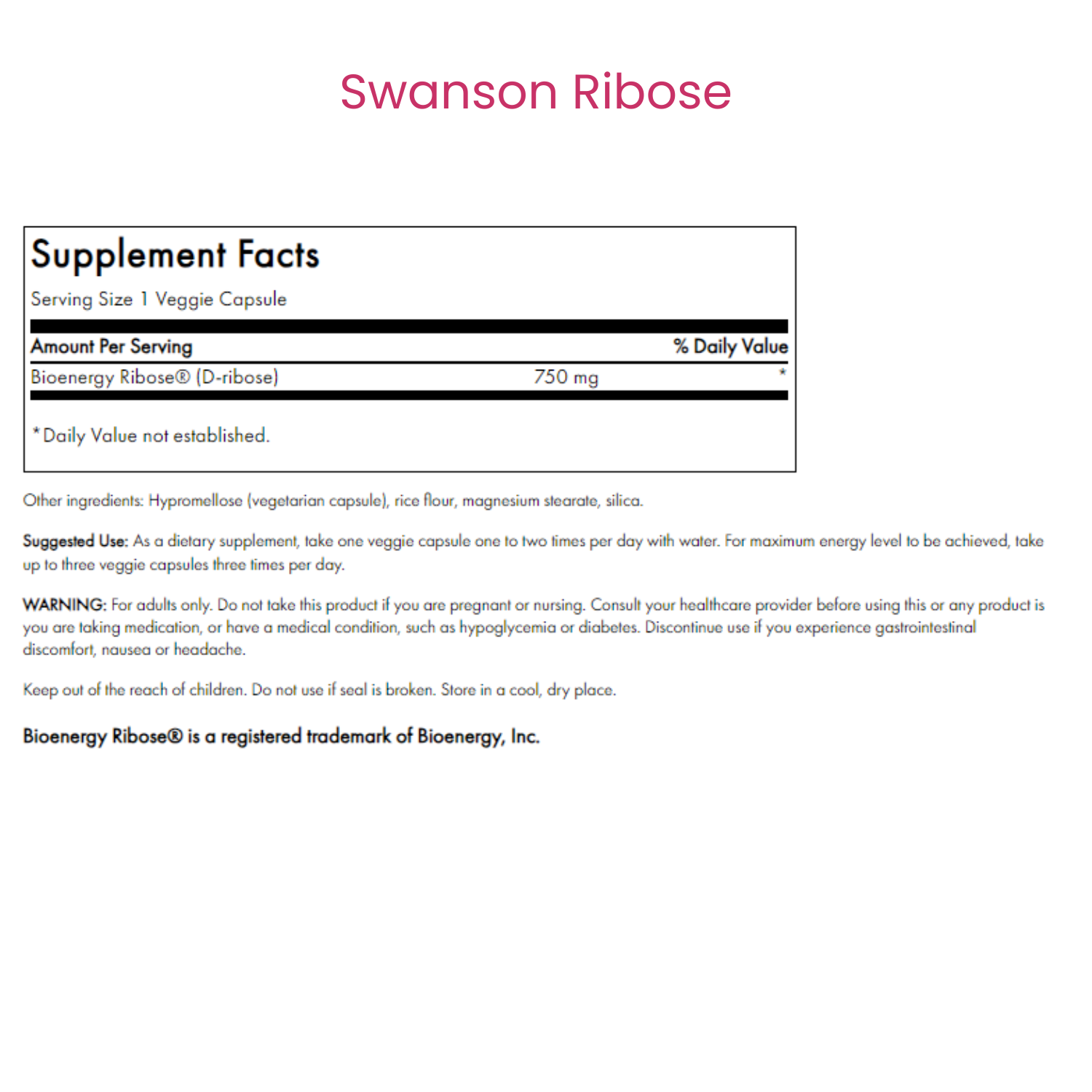 Ribose is the vital structural backbone for critical cellular compounds including adenosine triphosphate (ATP), the fundamental source of cellular energy. Without ribose, our bodies would quickly run out of energy and would lose the ability to generate the necessary components for cellular repair, tissue rejuvenation and recovery.